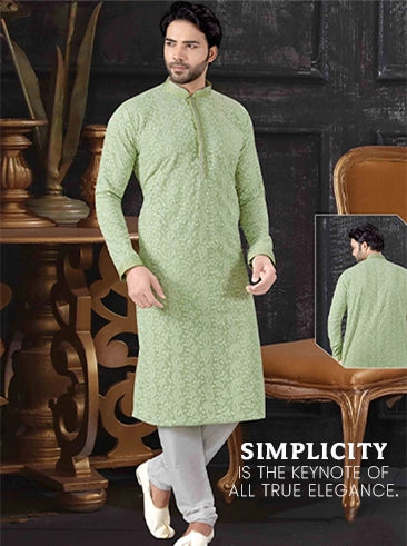 Lucknowi Chikankari Green 'Bahar' Cotton Gents Kurta-GK20001