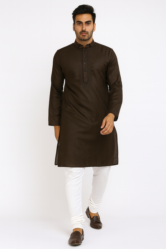 Lucknowi Chikankari Brown 'Rang-e-Mitti' Cotton Gents Kurta-GK00026