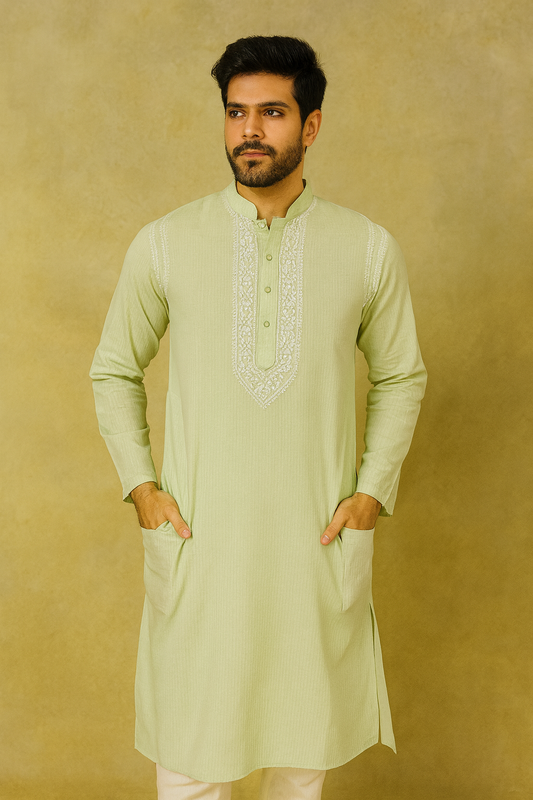 Lucknowi Chikankari Green 'Bahar' Cotton Gents Kurta-GK20001