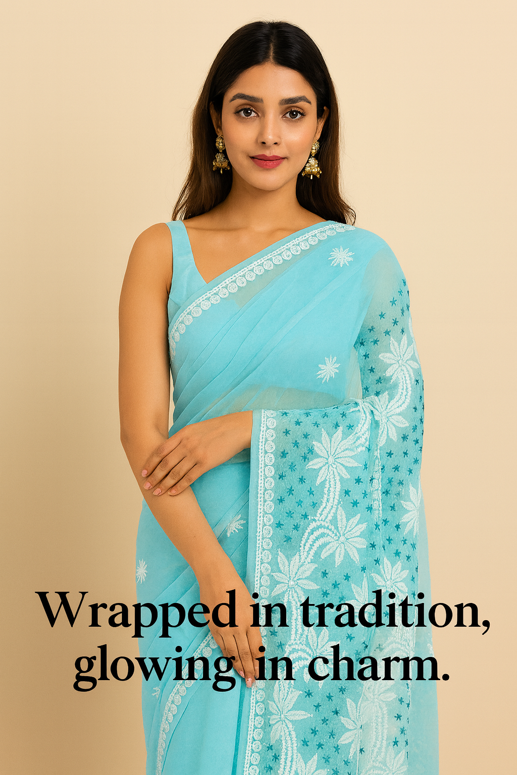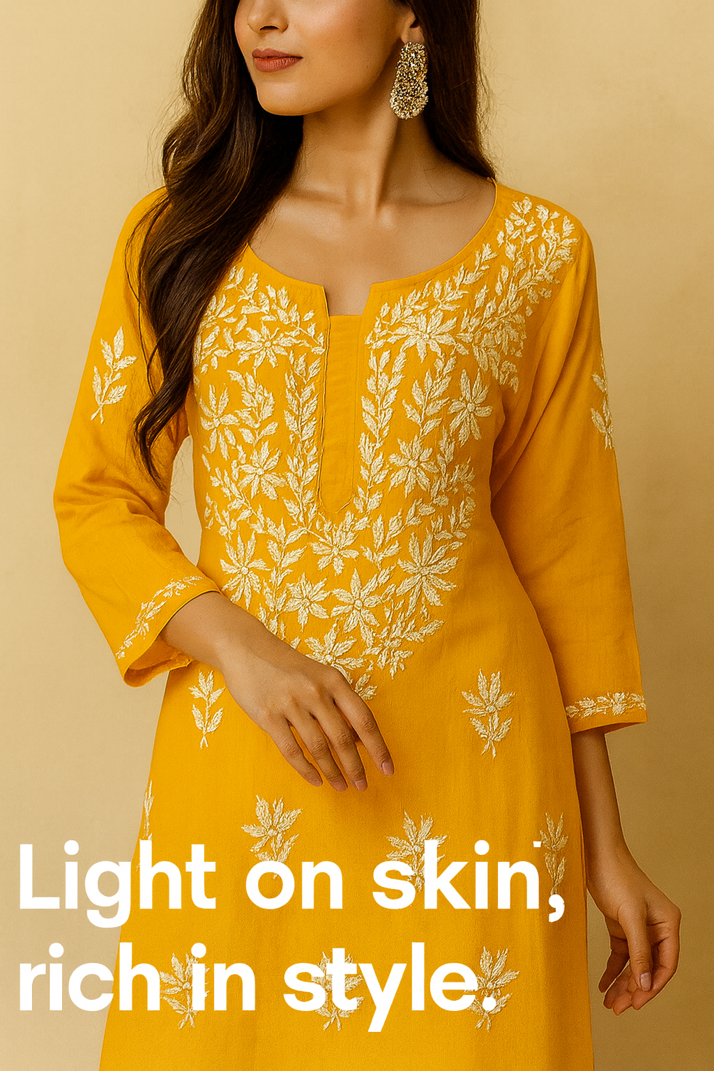 Lucknowi Chikankari Fawn 'Karimi' Georgette Kurti-K30056