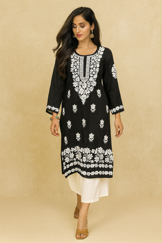 Lucknowi Chikankari Black Modal Kurti-K000139