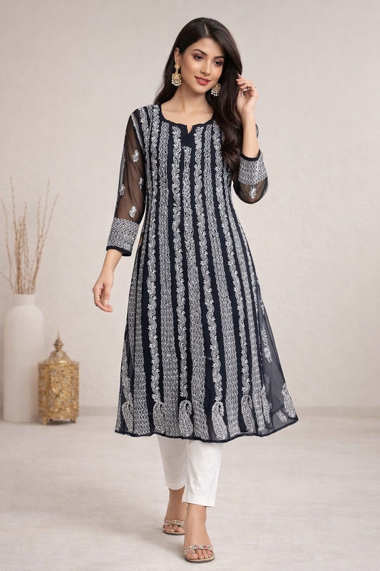 Lucknowi Chikankari Blue 'Aab-e-Asmaan' Georgette Anarkali-K30077