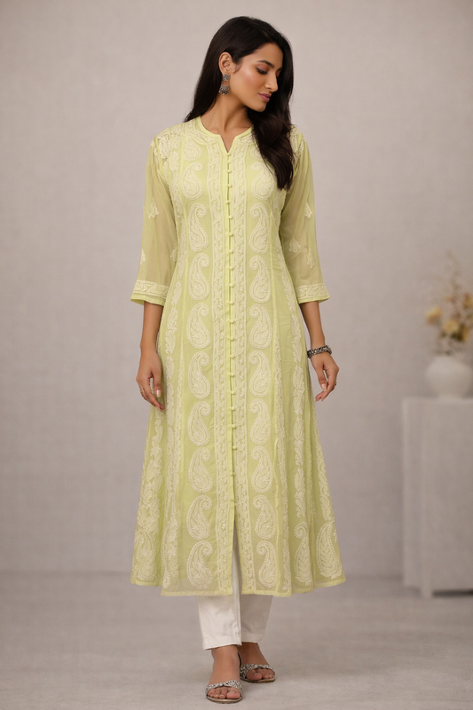Lucknowi Chikankari Yellow 'Sunehri' Georgette Anarkali-K30042