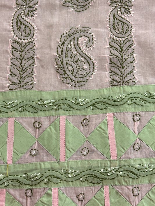 Lucknowi Chikankari Unstitched Pink Cotton Kurta-Bottom-Dupatta Fabric-U30011