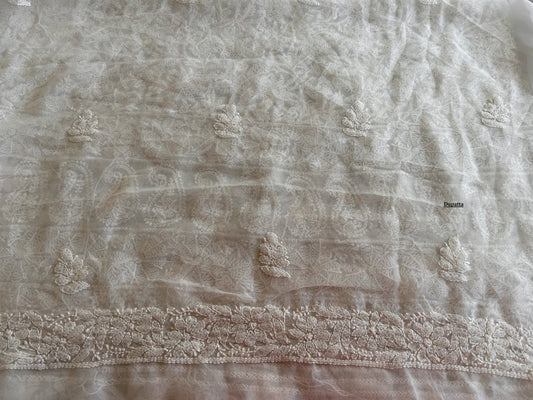 Lucknowi Chikankari Unstitched White Georgette Kurta-Bottom-Dupatta Fabric-U30009
