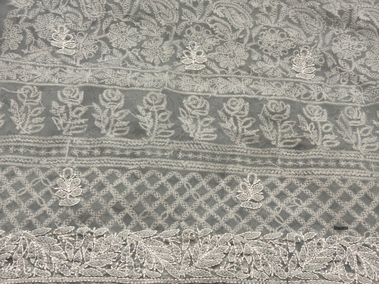 Lucknowi Chikankari Unstitched Grey Georgette Kurta-Bottom-Dupatta Fabric-U30008