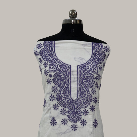Lucknowi Chikankari Unstitched White Cotton Kurta-Bottom Fabric-U20012