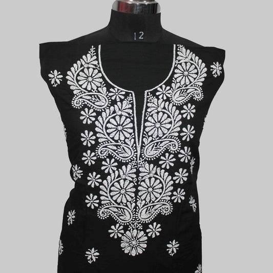 Lucknowi Chikankari Unstitched Black Cotton Kurta-Bottom Fabric-U20013
