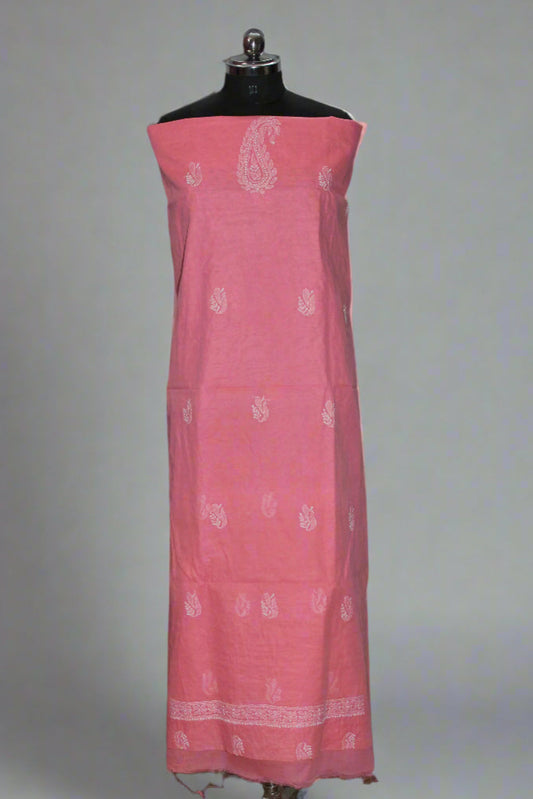 Lucknowi Chikankari Unstitched Pink Cotton Kurta Bottom Fabric-U20004