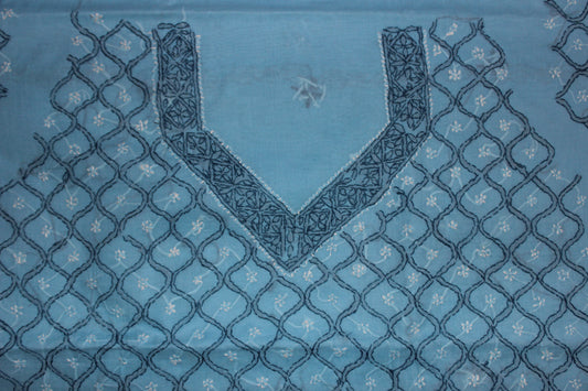 Lucknowi Chikankari Unstitched Blue Cotton Kurta-Bottom Fabric-U20005