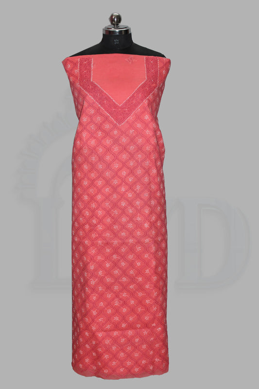 Lucknowi Chikankari Unstitched Coral Pink Cotton Kurta-Bottom Fabric-U20007