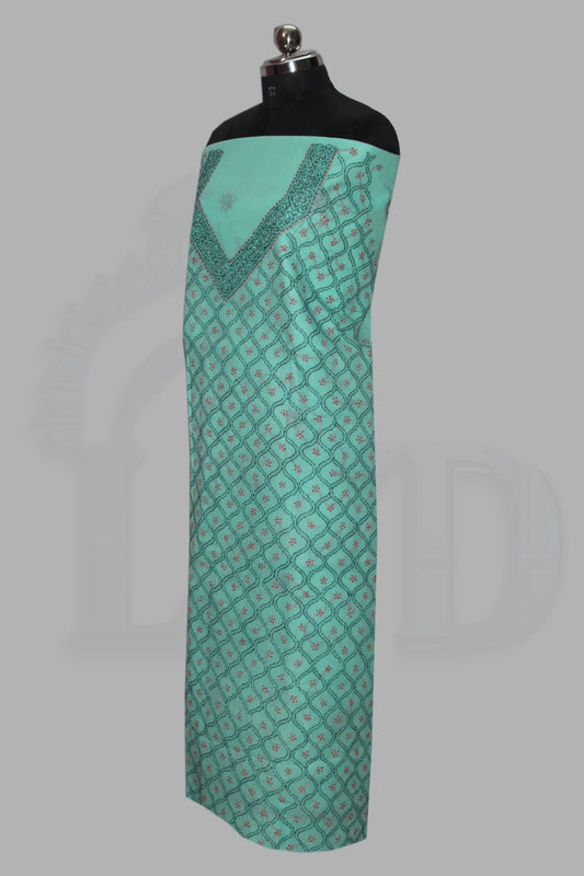 Lucknowi Chikankari Unstitched Green Cotton Kurta-Bottom Fabric-U20006