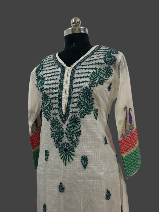 Lucknowi Chikankari White Kota Kurti-PE00001