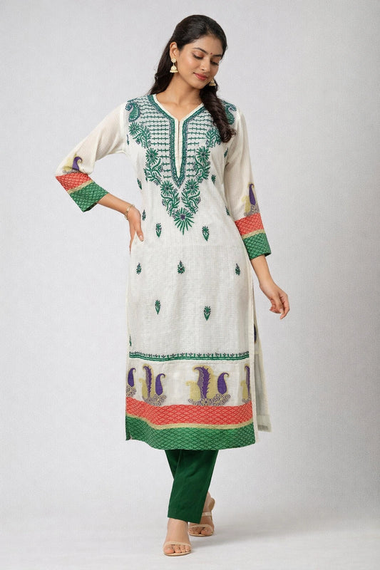 Lucknowi Chikankari Women's Green 'Bahar' Cotton Kurta