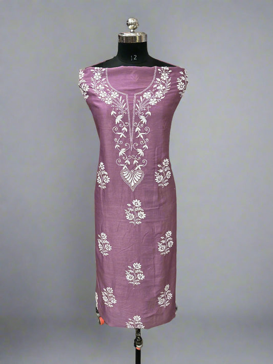 Lucknowi Chikankari Unstitched Mauve Chanderi Kurta-Dupatta Fabric-PG400051