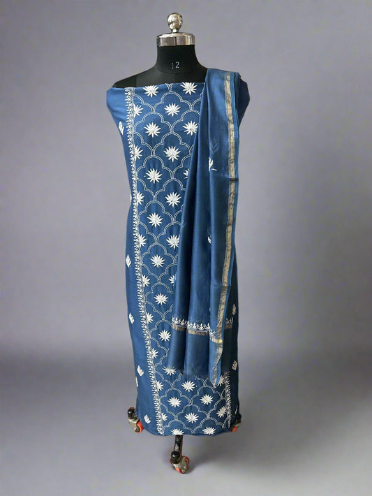 New Arrivals Popular TrendingLucknowi Chikankari Unstitched Blue Chanderi Kurta-Dupatta Fabric-PG400055