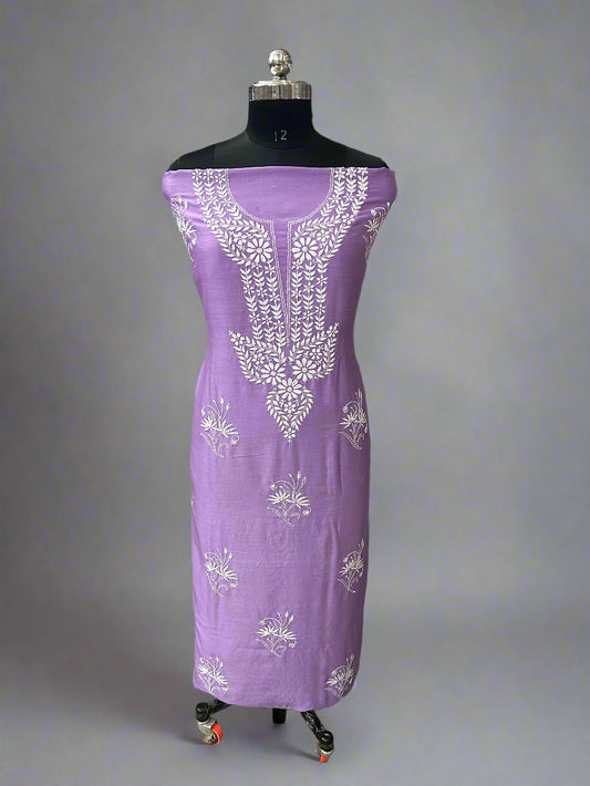New Arrivals Popular TrendingLucknowi Chikankari Unstitched Purple Chanderi Kurta-Dupatta Fabric-PG400057