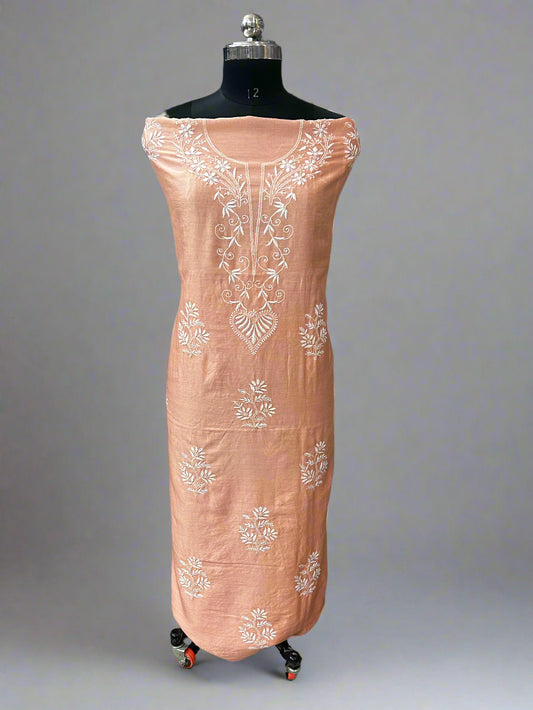 Lucknowi Chikankari Unstitched Peach Chanderi Kurta-Dupatta Fabric-PG400046