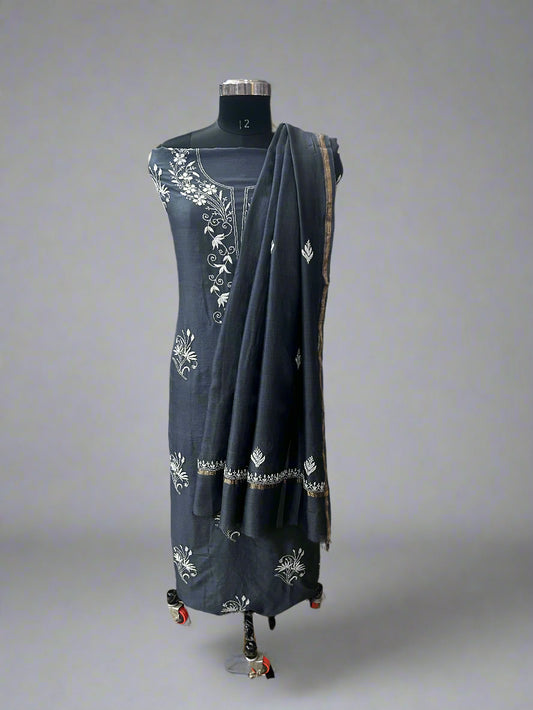New Arrivals Popular TrendingLucknowi Chikankari Unstitched Grey Chanderi Kurta-Dupatta Fabric-PG400058
