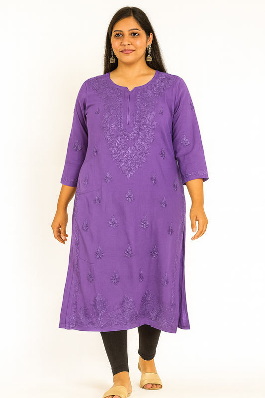 Lucknowi Chikankari Purple Modal 'Jamuni' Kurti-K000191