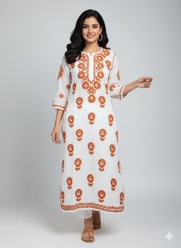 Lucknowi Chikankari White Chanderi Kurti-K50081