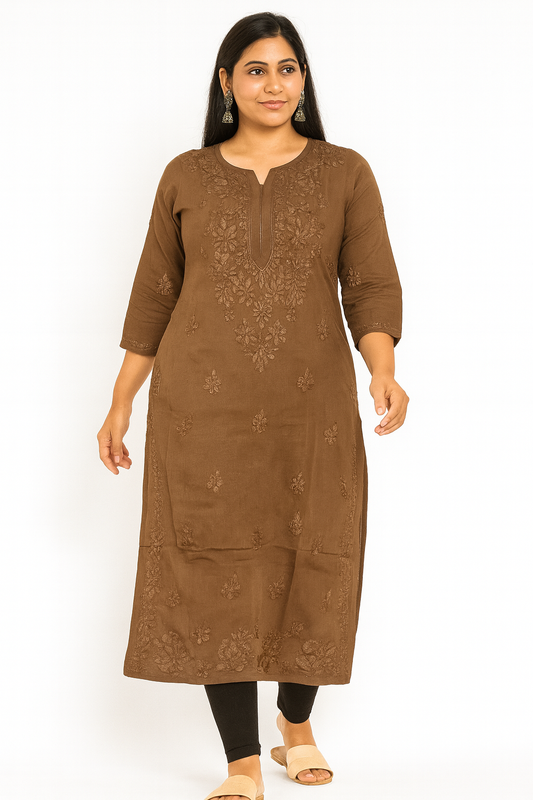 Lucknowi Chikankari Brown 'Rang-e-Mitti' Modal Kurti-K30076