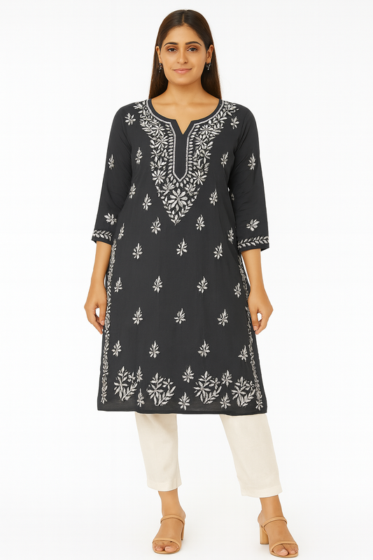 Lucknowi Chikankari Grey 'Dhoondhla' Modal Kurti-K000187