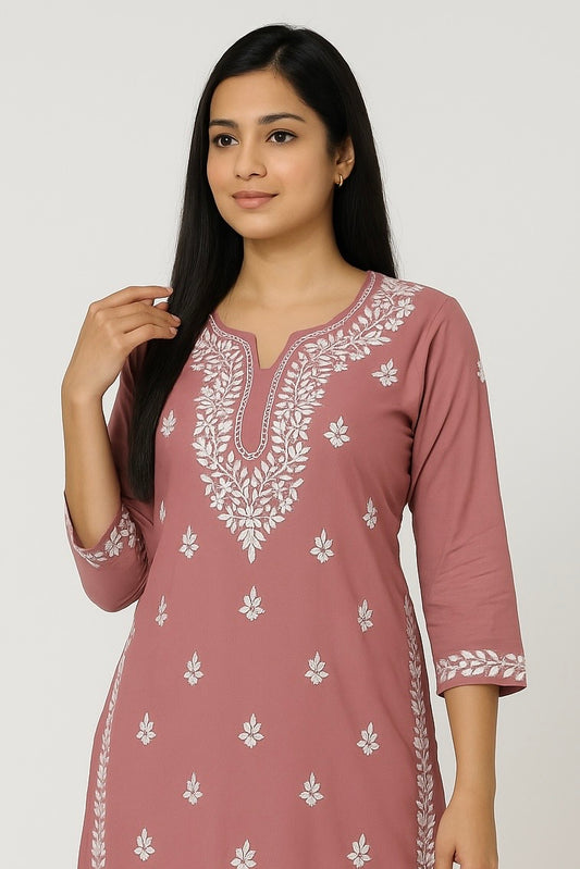 Lucknowi Chikankari Sandy Pink 'Shagufta' Modal Kurti-K000188