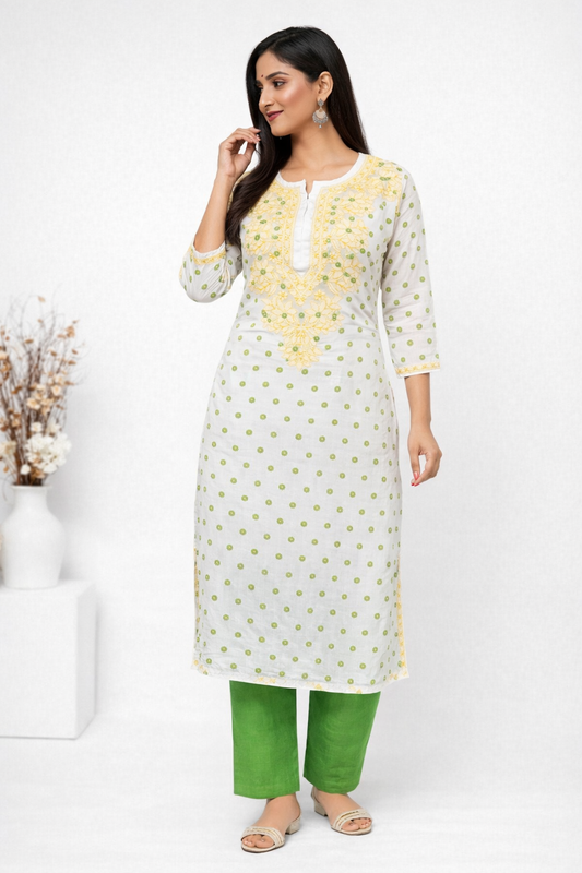 Lucknow Fashion Diary Hand Embroidered Lucknowi Chikankari Women's White 'Ujaala' Cotton Kurta-K50002