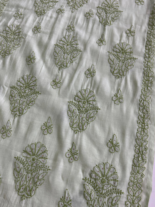 Lucknowi Chikankari Green Chanderi Kurti-K000172