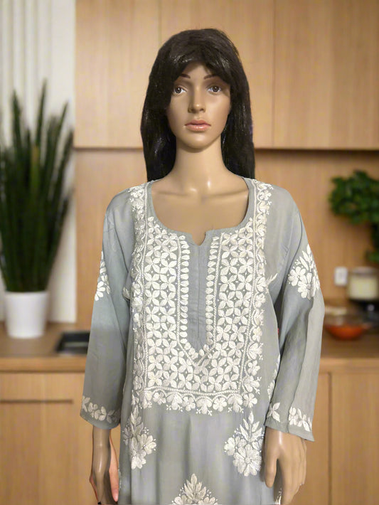 Lucknowi Chikankari Grey Modal Kurti-K80002