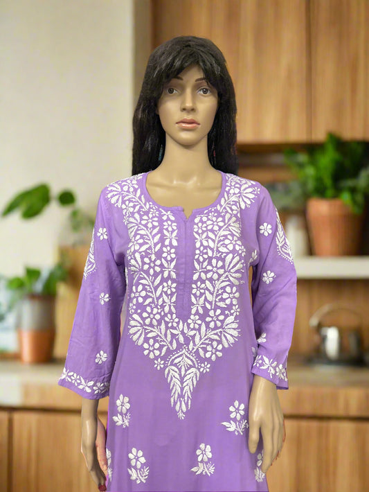 Lucknowi Chikankari Purple Modal Kurti-K50078