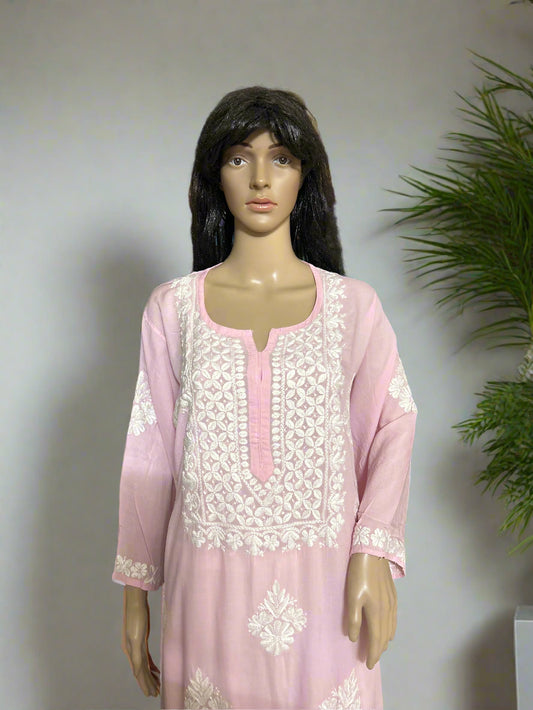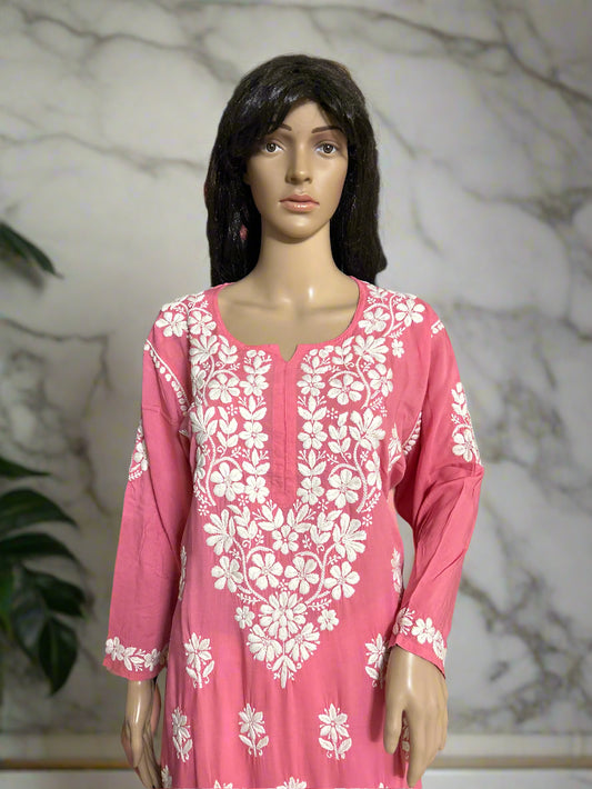 Lucknowi Chikankari Pink Modal Kurti-K70009