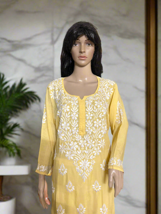 Lucknowi Chikankari Yellow Modal Kurti-K70008