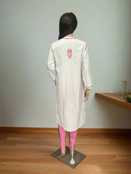 Lucknowi Chikankari White Cotton Kurti-K000038