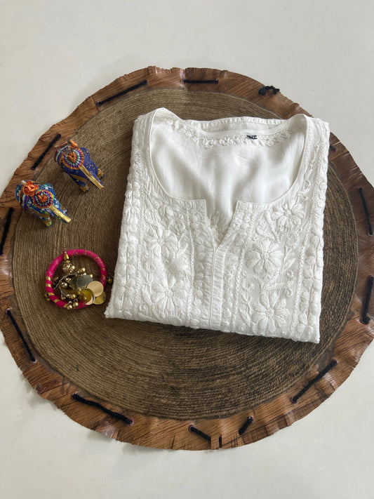 Lucknowi Chikankari White 'Ujaala' Modal Kurti-K50088