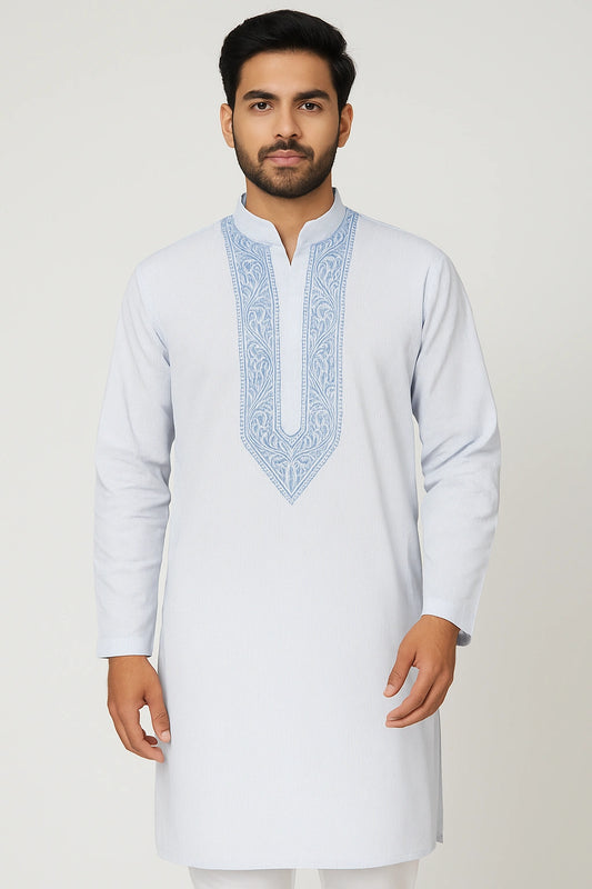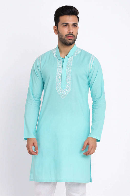Lucknowi Chikankari Men's Blue 'Aab-e-Asmaan' Cotton Kurta