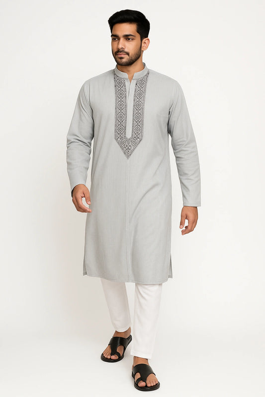Lucknowi Chikankari Men's White 'Ujaala' Cotton Kurta