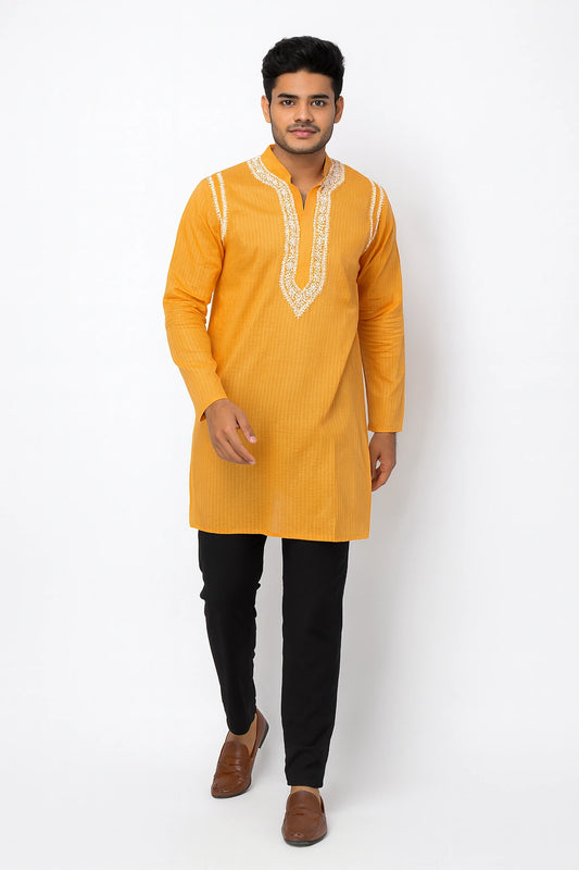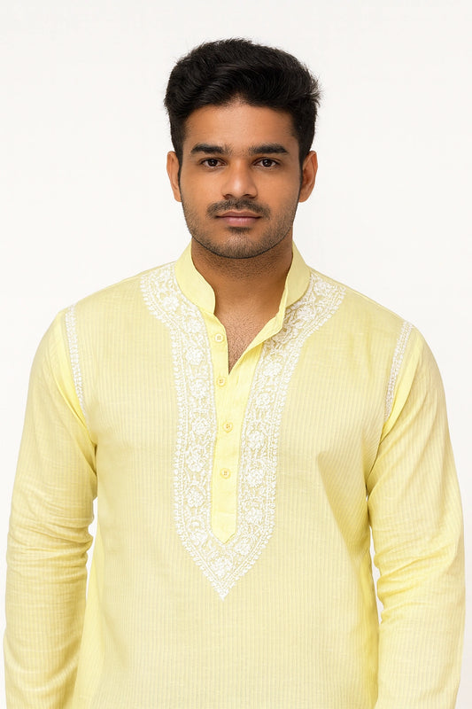 Lucknowi Chikankari Men's Yellow 'Sunehri' Cotton Kurta
