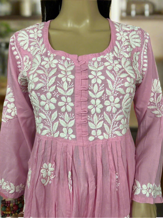 Lucknowi Chikankari Pink Georgette Short Kurti-T40002
