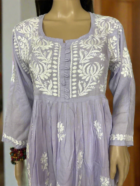 Lucknowi Chikankari Lavender Modal Short Kurti-T000035