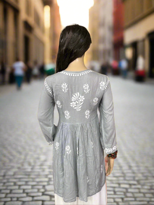 Lucknowi Chikankari Grey Modal Short Kurti-T000032