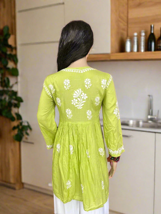 Lucknowi Chikankari Green Modal Short Kurti-T000033