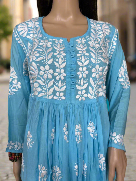 Lucknowi Chikankari Blue Modal Short Kurti-T000034