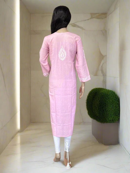 Lucknowi Chikankari Baby Pink Cotton Kurti-K000116