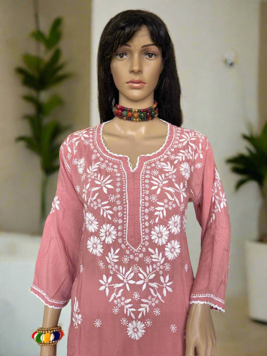 Lucknowi Chikankari Pinkish Mauve Modal Kurti-K000121
