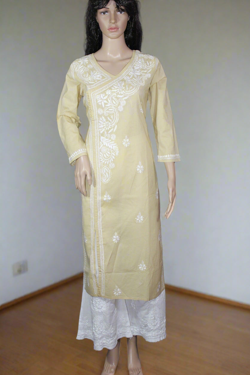 Lucknow Chikankari Fawn Cotton Angrakha- K30032