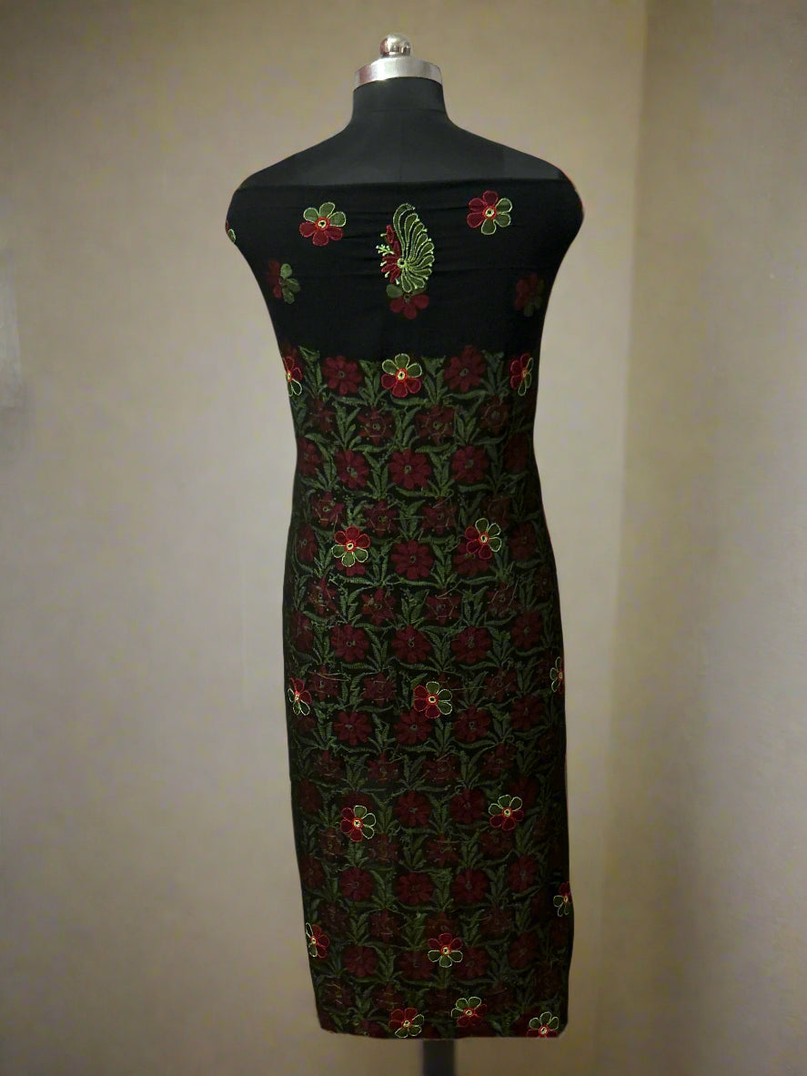 Lucknowi Chikankari Unstitched Black Georgette Kurta Fabric-PG100033