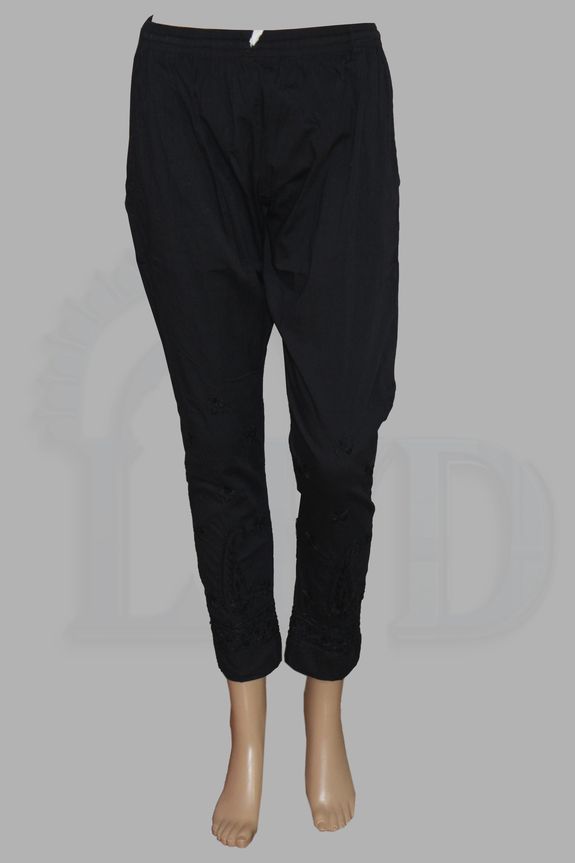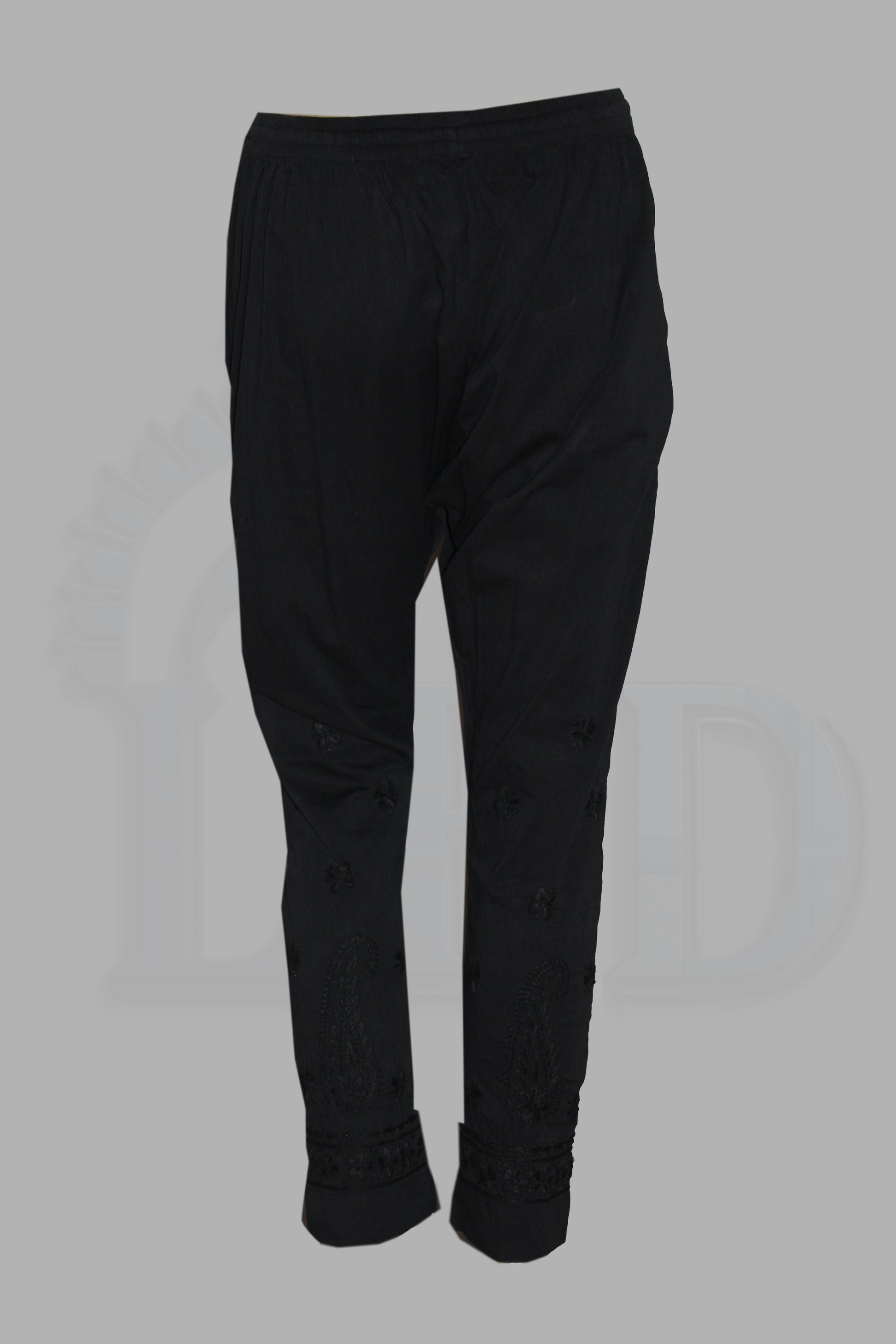 Lucknowi Chikankari Black Lycra Pant-BPt00002