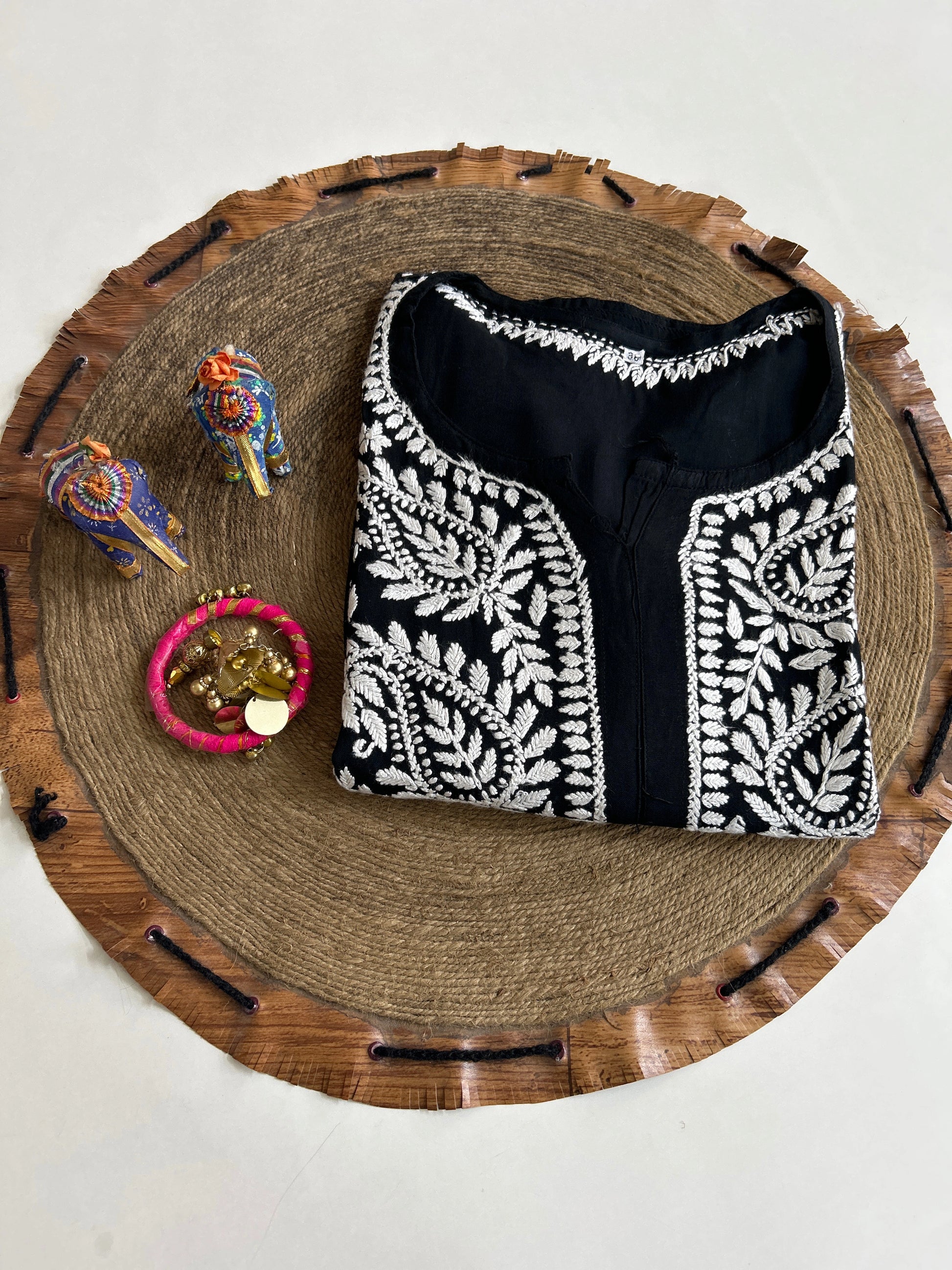 Lucknowi Chikankari Black Rayon Kurti-K000166